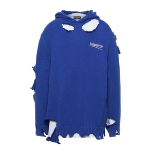 jersey, lavorato a maglia, brand logo, maglia media, tessuto strappato, fantasia bicolore, collo con cappuccio, maniche lunghe, senza tasche, vestibilità ampia